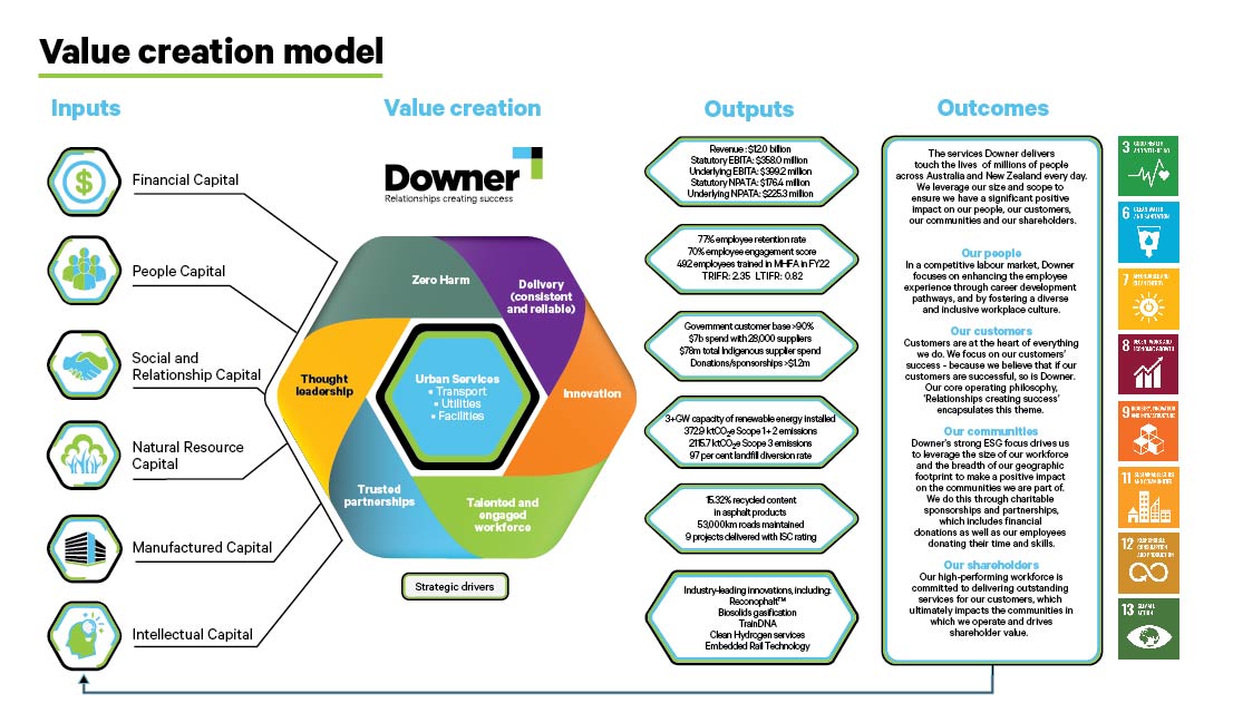 온라인슬롯사이트는 국제통합보고위원회의 6대 캐피털 개념에 맞춰 가치창출 프로세스를 공개했습니다. 이는 온라인슬롯사이트의 가치 원천(입력), 비즈니스 모델(가치 창출), 온라인슬롯사이트가 기여하는 가치(산출 및 성과) 간의 상호 연관성을 한눈에 보여줍니다.