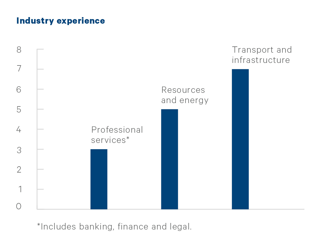 Mr Menhinnitt는 대규모 인프라 개발 및 도시 재생, 투자 관리, 건설, 자산 서비스, 운영 및 유지 관리 분야에서 광범위한 국내 및 국제 경험을 보유한 숙련된 고위 간부입니다. 그는 현재 GPT 그룹의 비상임 88 슬롯이자 호주 전쟁 기념관 개발 위원회의 회원이자 Fluent Property Pty Ltd의 회장입니다. Mr Menhinnitt는 퀸즈랜드 공과 대학에서 공학 학사(기계)와 경영 석사(응용 금융)를 취득했습니다.