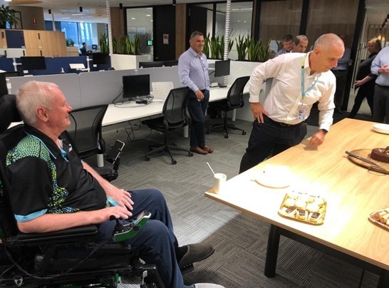 멜버른 사무실에서 Sergio Cinerari의 60번째 생일 모닝 티에서 모닝 티를 즐기고 있는 메이저 슬롯사이트 아톰카지노.